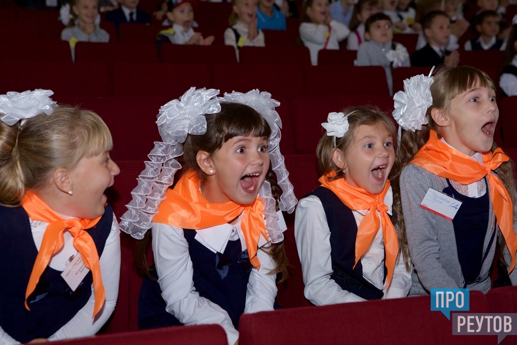 Подарками от главы города Реутов и цирковым представлением в ДК «Мир» завершился для 1115 реутовских первоклассников их первый в жизни школьный день. В 2015 году число первоклашек в Реутове рекордное за несколько последних десятилетий: во многих школах помимо привычных литер «А», «Б» и «В» при формировании первых классов пришлось использовать дополнительные буквы алфавита. А в школе №10 и вовсе в первый раз в первый класс пришли сразу 183 ученика, поэтому в этом учреждении есть даже 1-й «Е» класс! На церемонии посвящения в первоклассники города Реутова зрительный зал ДК «Мир» был заполнен полностью, ни одного пустого места. Ребята живо и шумно реагировали на все выступления со сцены. Также громогласно они пообщались и с главой города Сергеем Юровым.