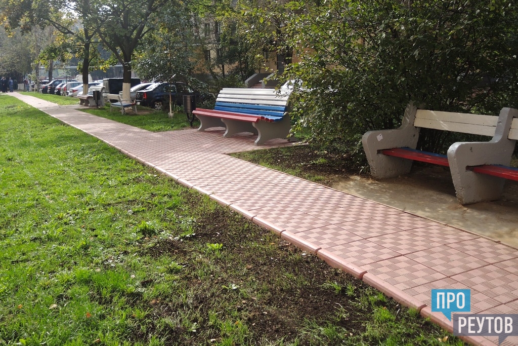 На месте вытоптанного пустыря по адресу Носовихинское шоссе, 16, благодаря сотрудникам РЭУ-6, проложены парковые дорожки, высажен газон, установлены урны и лавочки, выкрашенные в цвет российского триколора.