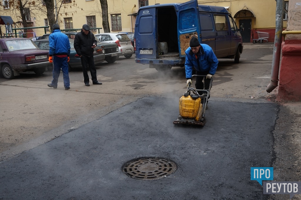 Одной ямой на Новой, 14, той самой, о которой за три дня до этого сообщил глава Реутова, дорожники не ограничились — начали ремонт с выбоины поменьше, на Ленина, 12.