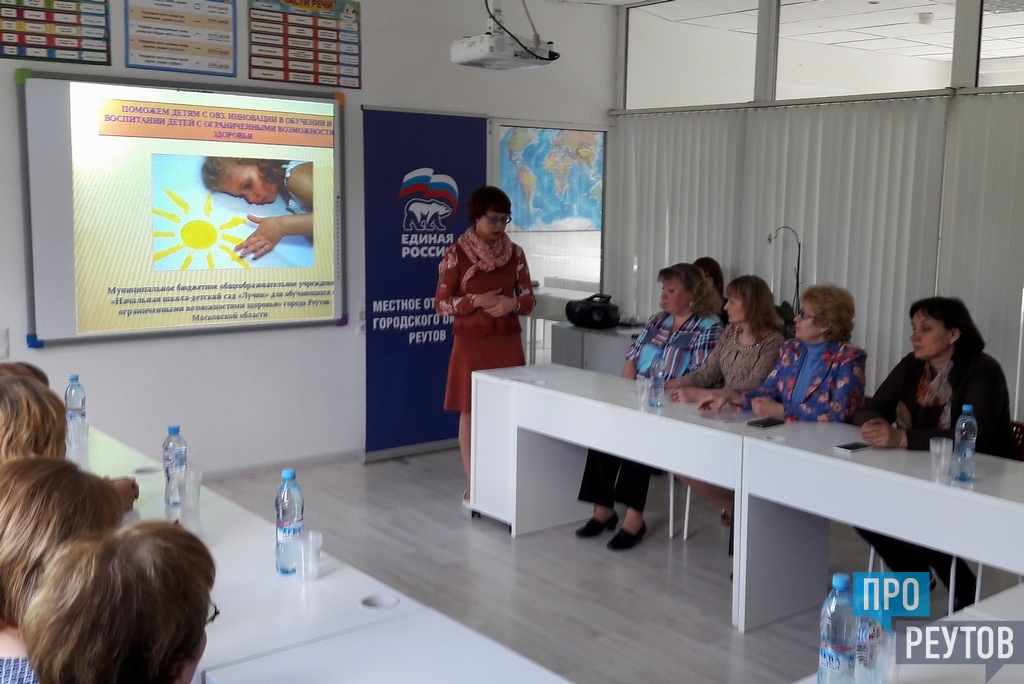В Реутове прошла презентация инициативного социального проекта, направленного на оптимизацию процесса обучения и воспитания детей с ограниченными возможностями здоровья. Идея была разработана членами «проектной мастерской» из числа сотрудников специальной коррекционной начальной школы — детского сада «Лучик» и представлена для обсуждения членам профессионального сообщества, представителям администрации города и городского отделения партии «Единая Россия».