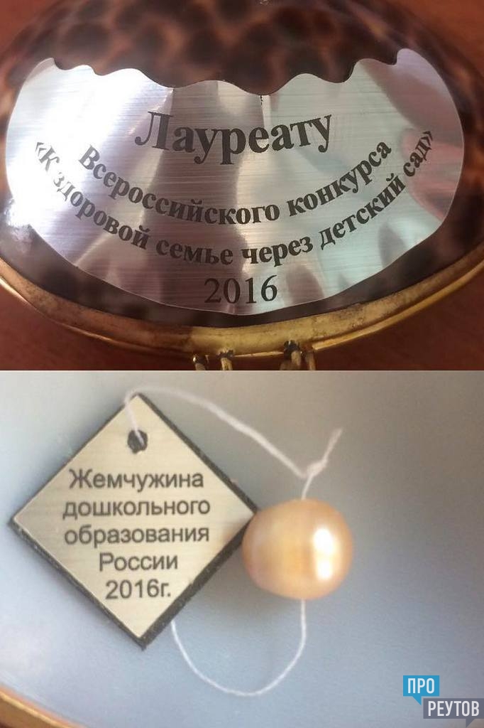 Реутовский детский сад №11 «Колокольчик» стал лауреатом VII Всероссийского конкурса «К здоровой семье через детский сад». Старший воспитатель Марина Коротунова, инструктор по физкультуре Наталья Тишкина, педагог-психолог Светлана Панарина, социальный педагог Анастасия Якубова, музыкальный руководитель Светлана Чулкова и воспитатель Елена Салиева успешно защитили свой проект «Детский сад и семья — территория здоровья». Вместе с дипломом команда детского сада «Колокольчик» привезла в Реутов почётное звание — «Жемчужина дошкольного образования России 2016». Призом для победителей стала настоящая жемчужина.