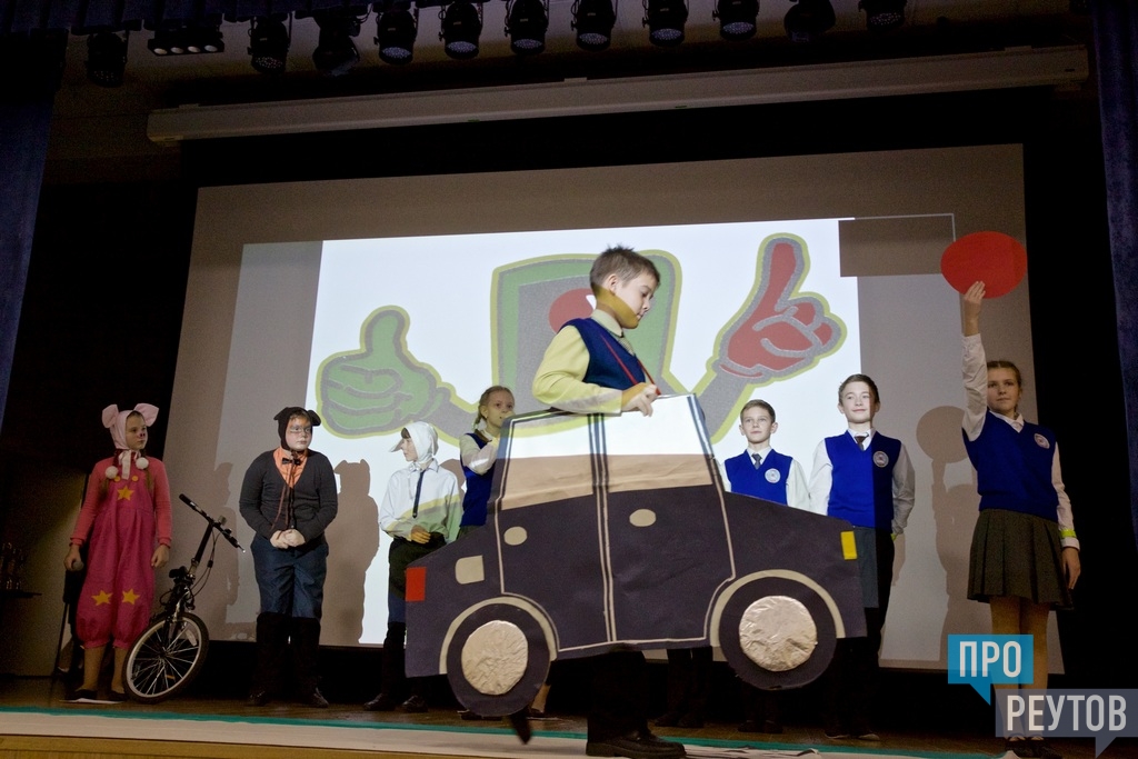 На первый взгляд школьники просто устроили весёлый КВН. На самом деле тема была более чем серьёзная — правила дорожного движения и безопасность на дороге. Причём яркое действо началось ещё в фойе школы, где расположилась выставка творческих работ школьников.