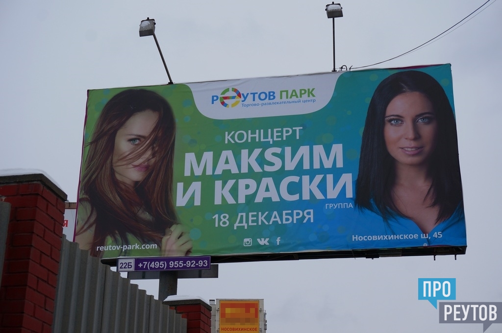 Бесплатный концерт певицы МакSим и группы «Краски» пройдёт в торгово-развлекательном центре «Реутов Парк» в воскресенье 18 декабря. Начало в 17.00.