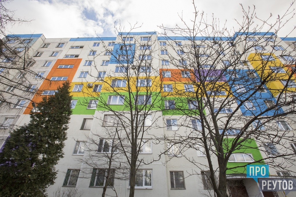 Всего используются шесть цветов: оранжевый, жёлтый, синий, голубой, зелёный и бежевый. На момент написания статьи на улице Октября, 8, работали шесть промышленных альпинистов. Их пригласил подрядчик выигравший аукцион фонда капремонта на проведение данных работ. Газета «ПроРеутов» разузнала подробности у генерального директора управляющей компании «Жилсервис» Олега Шутова.