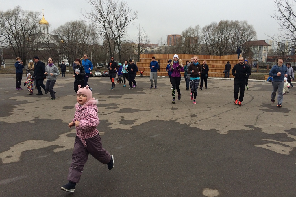 Первая вводная тренировка состояла из разминки и бега — участники пробежали около трёх километров вокруг парка. Анна Тангова начала занятие с упражнений по технике бега и укреплению стопы. Затем последовала серия силовых упражнений на все группы мышц. Тренер подсказывала участникам, как правильно держать корпус и дышать. В завершение провели растяжку.