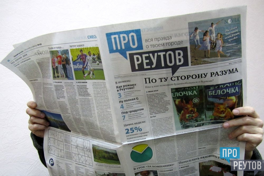 Сегодня вышел пятый номер бесплатной еженедельной газеты «ПроРеутов». Утром его раздавали всем желающим возле метро «Новокосино» (на реутовской стороне Носовихинского шоссе) и у железнодорожной станции «Реутово». Свежий номер газеты можно также получить в ДК «Мир», в МКДЦ, в НПО машиностроения, в ПУ №90, в городском бассейне на улице Котовского и в расчетных центрах СЦГХ.