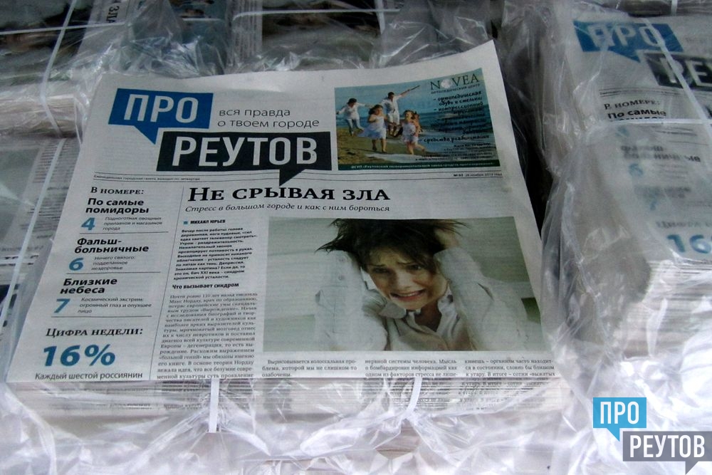 В четверг 28 ноября вышел седьмой номер бесплатной еженедельной газеты «ПроРеутов». Утром его раздавали всем желающим у вестибюлей метро «Новокосино» (на реутовской стороне) и у железнодорожной станции. Свежий номер газеты можно также получить в ДК «Мир», в МКДЦ, в НПО машиностроения, в ПУ №90, в городском бассейне на улице Котовского и в расчетных центрах СЦГХ.