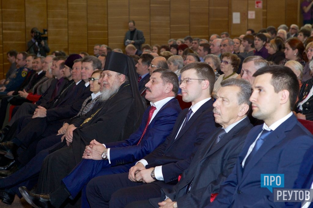 Ровно за неделю до Нового года в реутовском ДК «Мир» прошло главное праздничное мероприятие города. Программа включала отчетный доклад главы города Александра Ходырева, вручение наград, концерт и банкет. Первые гости начали собираться в фойе еще до 14.00 – официального начала регистрации. Всего зал заполнили около тысячи человек – медицинские работники, учителя, представители различных предприятий и организаций города, депутаты городского Совета.