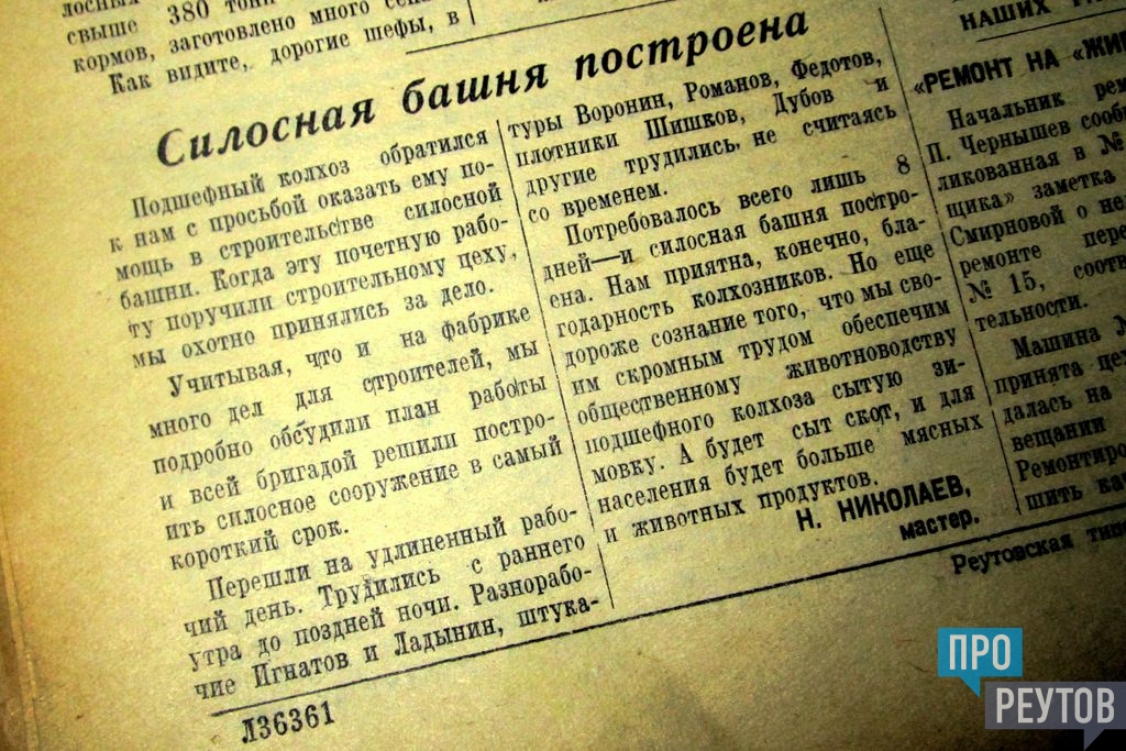В качестве аргумента к вопросу о том, когда же все-таки была построена всем в городе известная башня, Антонина Александровна приводит заметку от 28 июля 1954 года в тогдашней газете «Прядильщик», печатавшейся в Реутовской типографии. Вот что было в той заметке: