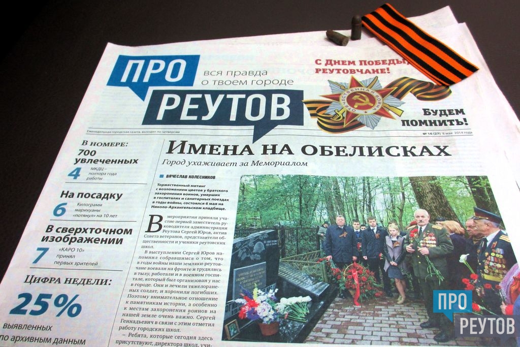 В четверг 24 апреля вышел 16-й (27-й) номер бесплатной еженедельной газеты «ПроРеутов». Утром всем желающим раздавали газету у вестибюлей метро «Новокосино» (на реутовской стороне) и возле железнодорожной станции Реутово с 7.00 до 9.00. Раздача продолжится в пятницу у перехода под ТРЦ «Экватор» с 10.00 до 12.00. Свежий номер можно также получить в ДК «Мир», МКДЦ, НПО машиностроения, ПУ №90, городском бассейне на улице Котовского и в расчетных центрах СЦГХ.