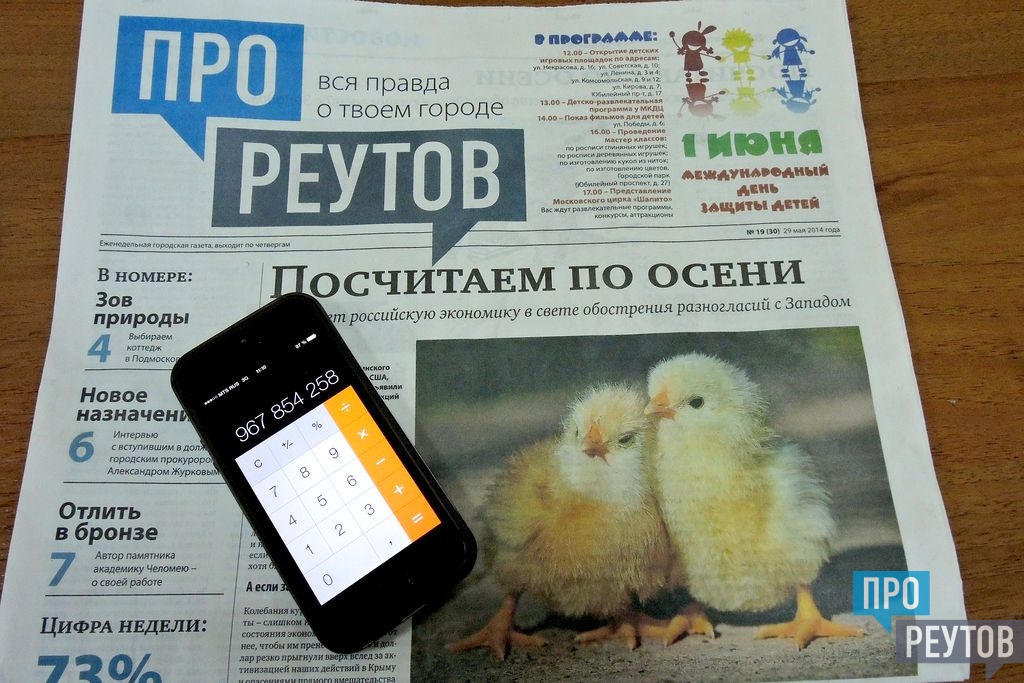 В четверг 29 мая вышел 19-й (30-й) номер бесплатной еженедельной газеты «ПроРеутов». Утром все желающие могли взять газету у вестибюлей метро «Новокосино» (на реутовской стороне) и возле железнодорожной станции Реутово. Свежий номер можно также получить в ДК «Мир», МКДЦ, НПО машиностроения, ПУ №90, городском бассейне на улице Котовского и в расчетных центрах СЦГХ.