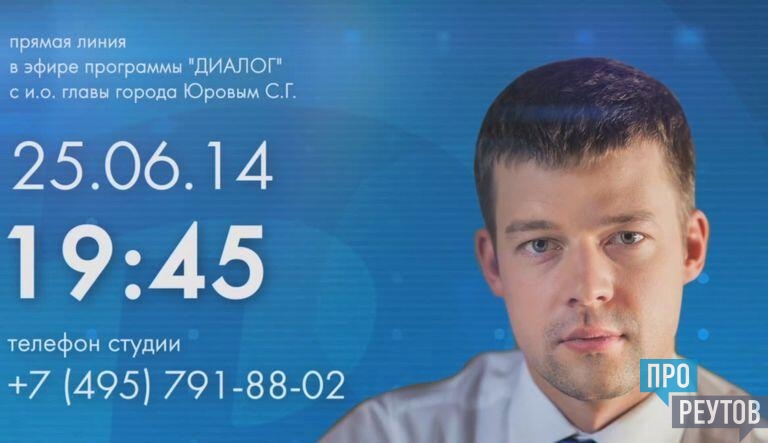 Сегодня в 19.45 исполняющий обязанности главы Реутова Сергей Юров выступит в прямом эфире программы «Диалог» на РТВ и ответит на вопросы жителей города.