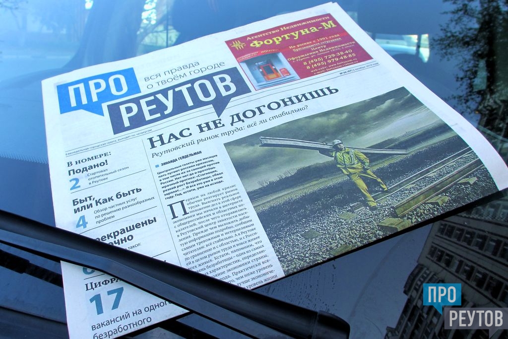В четверг 2 октября вышел 36-й (47-й) выпуск бесплатной еженедельной газеты «ПроРеутов». Утром все желающие могли взять газету у вестибюлей метро «Новокосино» (на реутовской стороне) и возле железнодорожной станции Реутово. Свежий номер можно также получить в ДК «Мир», МКДЦ, НПО машиностроения, ПУ №90, городском бассейне на улице Котовского и в расчетных центрах СЦГХ.