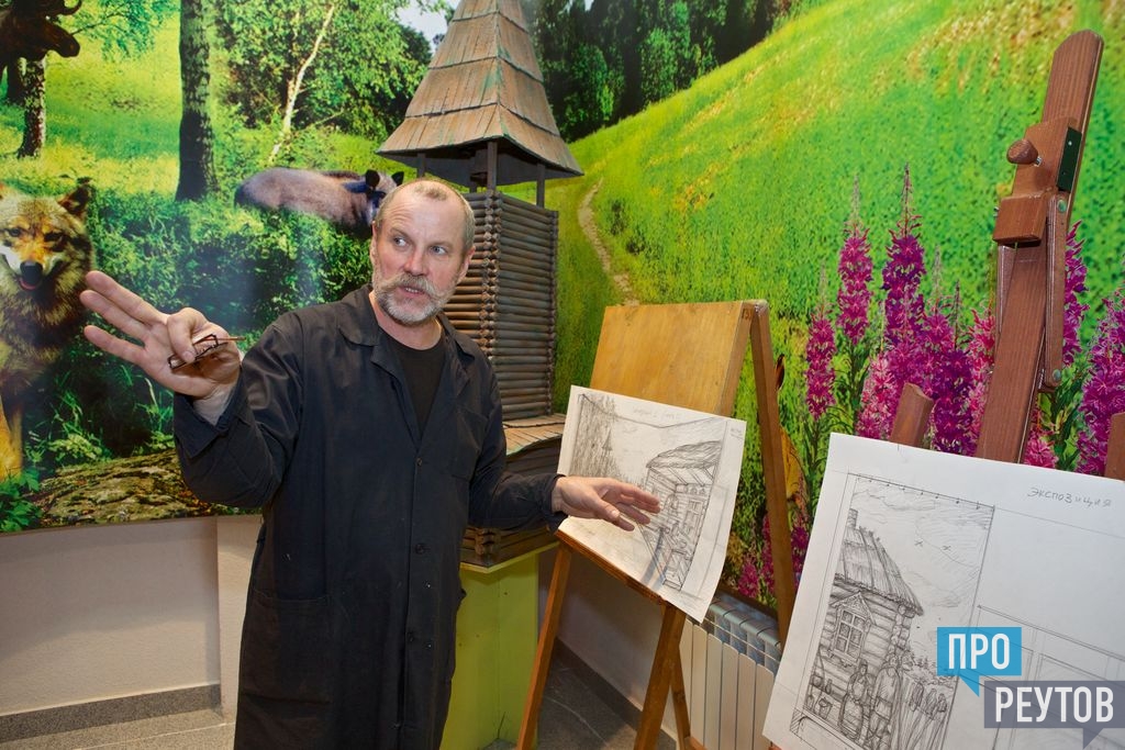 — У нас здесь всё будет с подсветками, — рассказывает о начатой работе Сергей Некрасов. — Сделаем регулируемый свет — вечернее и дневное освещение. Посетители смогут заглянуть и даже войти в избу «в разрезе» — с красным углом, с печью и полатями, у нас в запасниках есть и самовар, и братины… А в другом углу сделаем часть другой избы, но вид снаружи, и рядом с этой избой будут стоять предки нынешних реутовчан — крестьянка и колоритный мужик с бородой, возможно, поставим с ними ещё и ребёнка.