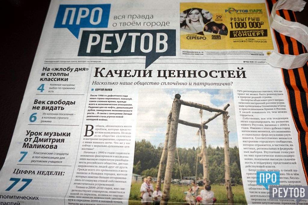 В четверг 20 ноября вышел 42-й (53-й) выпуск бесплатной еженедельной газеты «ПроРеутов». Утром все желающие могли взять газету у вестибюлей метро «Новокосино» (на реутовской стороне) и возле железнодорожной станции Реутово. Свежий номер можно также получить в ДК «Мир», МКДЦ, НПО машиностроения, ПУ №90, городском бассейне на улице Котовского и в расчетных центрах СЦГХ.