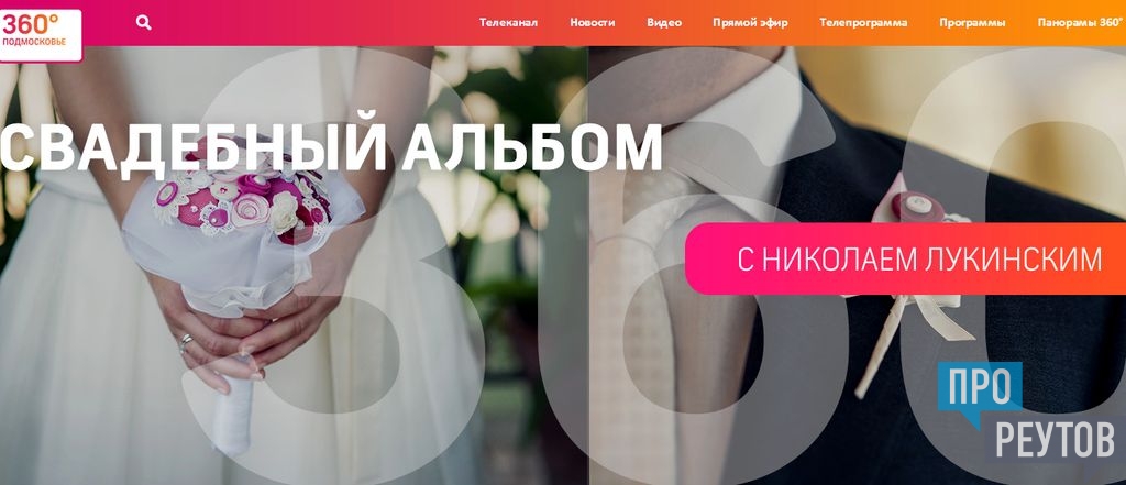 Съёмки одного из выпусков реалити-шоу «Свадебный альбом» на телеканале «360°» прошли в Реутове. «Свадебный альбом» — не совсем обычное шоу. Скорее, это документальная хроника испытаний, через которые проходит пара выбранных путем голосования на сайте телекомпании молодожёнов. И если в ток-шоу герои подстраиваются под сценарий программы в искусственно созданной среде, то в случае с программой «Свадебный альбом» всё наоборот — камера следует за героями в режиме повседневной реальности.