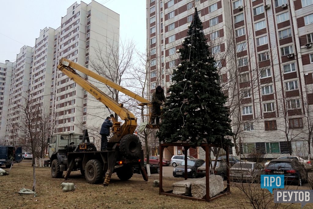 Отсутствие снега не помешало подготовке к одному из самых ожидаемых в нашей стране праздников. Новогодняя ёлка на главной площади Реутова появилась в конце прошлой недели, сегодня её начали украшать игрушками. Устанавливают праздничные деревья и в других местах. Как рассказал корреспонденту «ПроРеутов» представитель МУП «Озеленение и благоустройство», в этом году две новогодние ёлки появятся в городском парке: напротив избушки Деда Мороза и возле сцены. Кроме того, ёлки будут установлены возле Молодёжного культурно-досугового центра на улице Победы и в сквере за ДК «Мир». Ещё одно дерево сотрудники МУП установили во дворе дома №1 по улице Молодёжная.