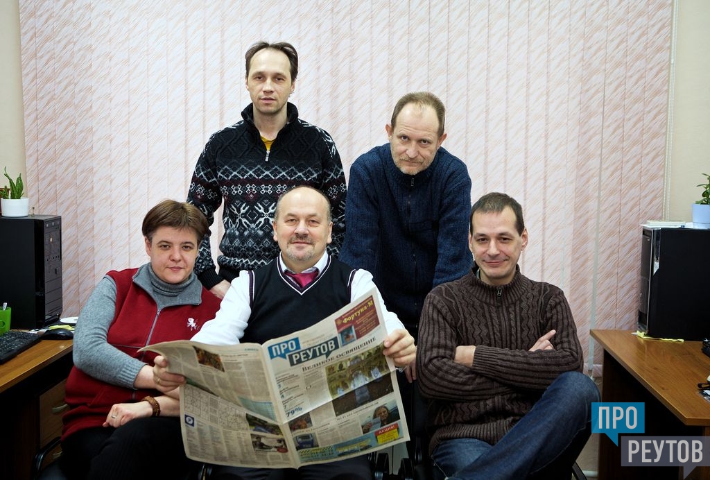 Редакция «ПроРеутов»: Зинаида Гейдельман, Вадим Козлов, Михаил Лукьянцев (первый ряд слева направо), Михаил Горячев, Вячеслав Колесников (второй ряд). Фото: Ранет Матказин.