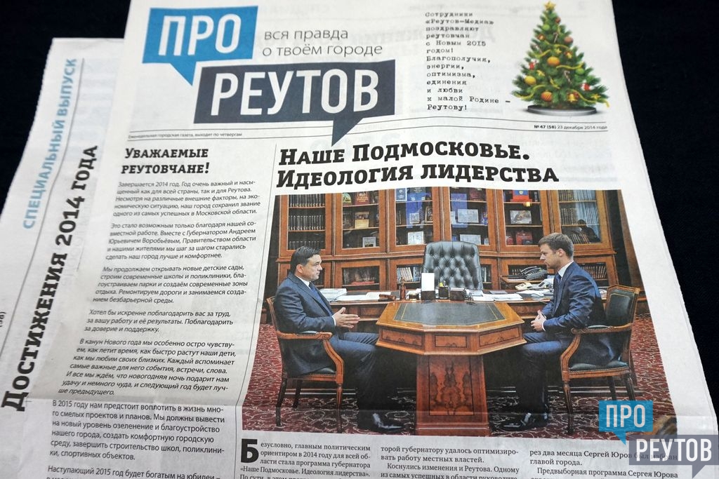 В четверг 25 декабря вышел 47-й (58-й) номер бесплатной еженедельной газеты «ПроРеутов». Это необычный выпуск нашей газеты. В нём мы постарались подвести итоги уходящего года во всех сферах.