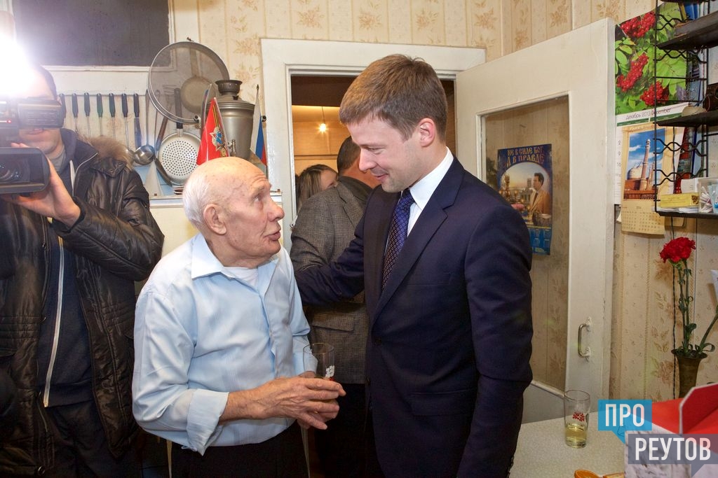Сергей Геннадиевич вручил ему цветы и подарок, пожелал заслуженному ветерану здоровья, благополучия, заверил его в том, что городские власти внимательно относятся к каждой просьбе всех ветеранов и участников Великой Отечественной войны, 70-летний юбилей победы в которой город будет широко отмечать в мае следующего года. Эти люди — как камертон святой связи поколений, передачи добрых традиций, которым Реутов следовал всегда и несомненно будет следовать и впредь.