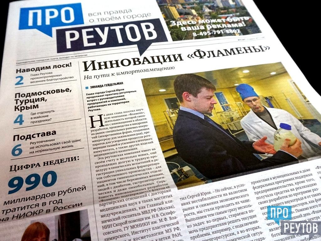 В четверг 19 марта вышел 9-й (67-й) выпуск бесплатной еженедельной газеты «ПроРеутов». Утром газету предлагали у метро «Новокосино» (на реутовской стороне) и возле железнодорожной станции Реутово. Свежий номер также можно взять в ДК «Мир», в Молодёжном культурно-досуговом центре и в Музейно-выставочном центре на улице Победы, в НПО машиностроения, в колледже «Энергия» (ПУ №90), в комплексе «Спорт-сервис» на улице Котовского, в расчетных центрах СЦГХ и в других заведениях нашего города.