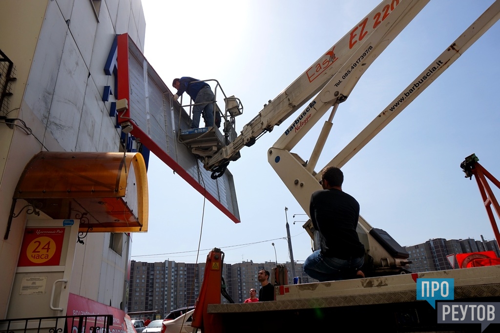 Рейды по борьбе с незаконной рекламой в Реутове проводятся каждую неделю. Очередной выезд прошёл 28 мая. Как рассказала главный специалист отдела по работе со СМИ и рекламе администрации Реутова Ирина Ткачёва, непосредственно руководившая рейдом, на обеих сторонах города за день демонтировали 15 незаконных рекламных конструкций. Торговый центр на Носовихинской, 9 стал заключительным аккордом операции. Вчера вечером рабочие сняли баннер и световой короб над фасадом и довершили демонтаж оставшихся конструкций сегодня утром — с помощью спецтехники.
