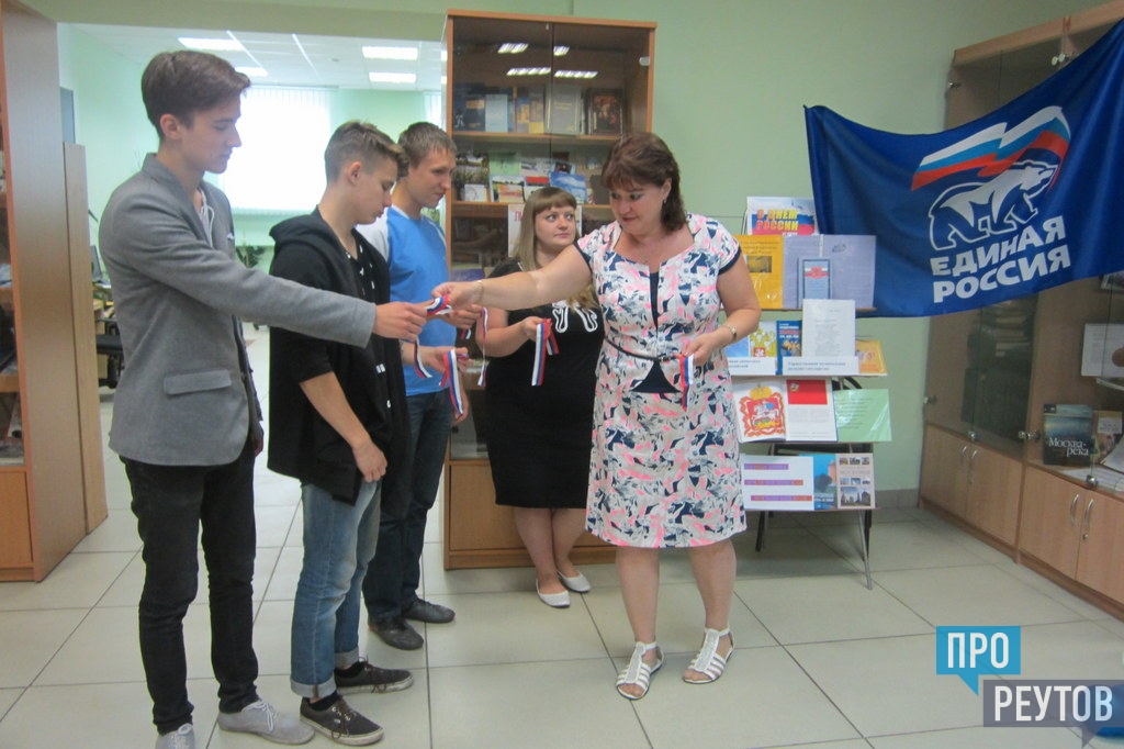 Кстати, 11 июня 2015 года, в четверг, в рамках еженедельной акции «Библиотека в парке», проходящей в городском парке Реутова с 11 до 13 часов, библиотекари и ребята из «Молодой гвардии» партии «Единая Россия» тоже раздавали прохожим символы цвета российского флага — ленточки. А еще детям и взрослым рассказывали и об истории Дня России, и об истории самого государства российского.