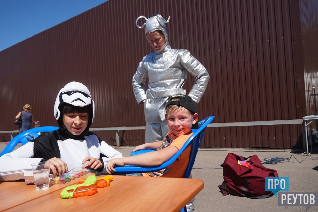 В Реутове его главными участники были, конечно, мальчишки и девчонки, а также их родители. Площадкой для высадки инопланетного десанта была выбрано место рядом с Молодёжным культурно-досуговым центром на улице Победы. И главной «летающей тарелкой» там стал похожий на неё мобильный планетарий, установленный прямо на улице. Это огромный серебристый тент-купол вроде палатки, в которой установлен собственно планетарий, то есть аппарат, проецирующий слайды или видео о космосе на экран потолка, кажущийся бездонным из-за своей формы.
