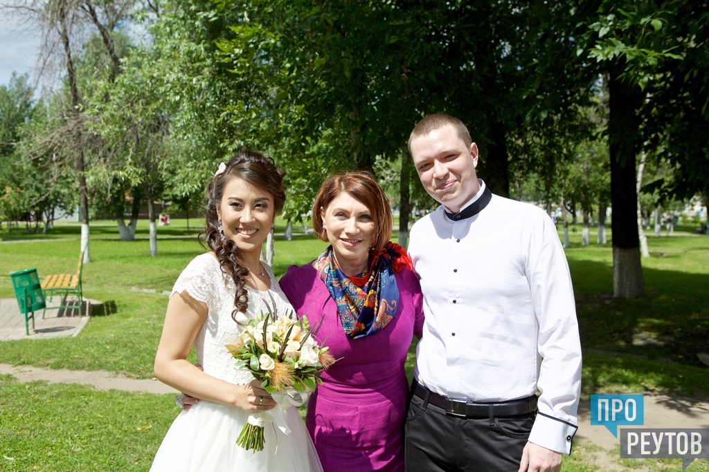 Затем на сцену для поздравлений поднялись молодожены-реутовчане Андрей Чегорка и Екатерина Белоусова, Александр Савинов и Айгуль Усаева. Обе пары вступили в этот день в брак в новом Дворце бракосочетаний, который открылся в Реутове прошлой осенью. Люди аплодировали молодым, и пока те шли между зрительскими рядами, осыпали их лепестками роз.
