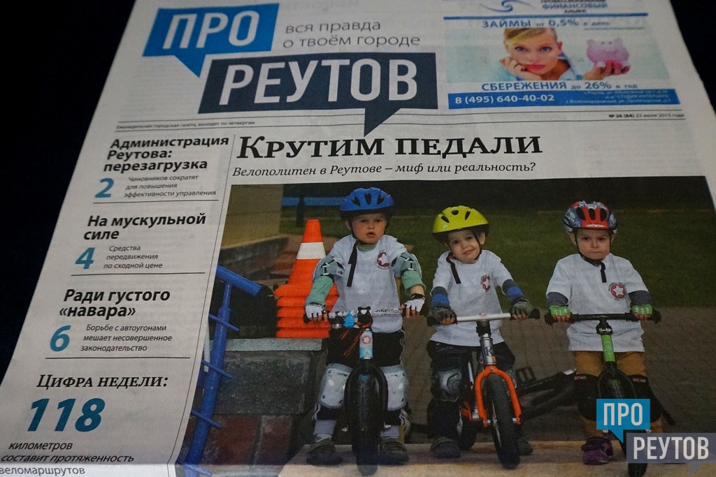 В четверг 23 июля вышел 26-й (84-й) выпуск бесплатной еженедельной газеты «ПроРеутов». Утром газету предлагали у метро «Новокосино» (на реутовской стороне) и возле железнодорожной станции Реутово. Свежий номер также можно взять в ДК «Мир», в Молодёжном культурно-досуговом центре, в Музейно-выставочном центре и в новом здании Многофункционального центра на улице Победы, в НПО машиностроения, в колледже «Энергия» (ПУ №90), в комплексе «Спорт-сервис» на улице Котовского, в расчетных центрах СЦГХ и в других заведениях нашего города.