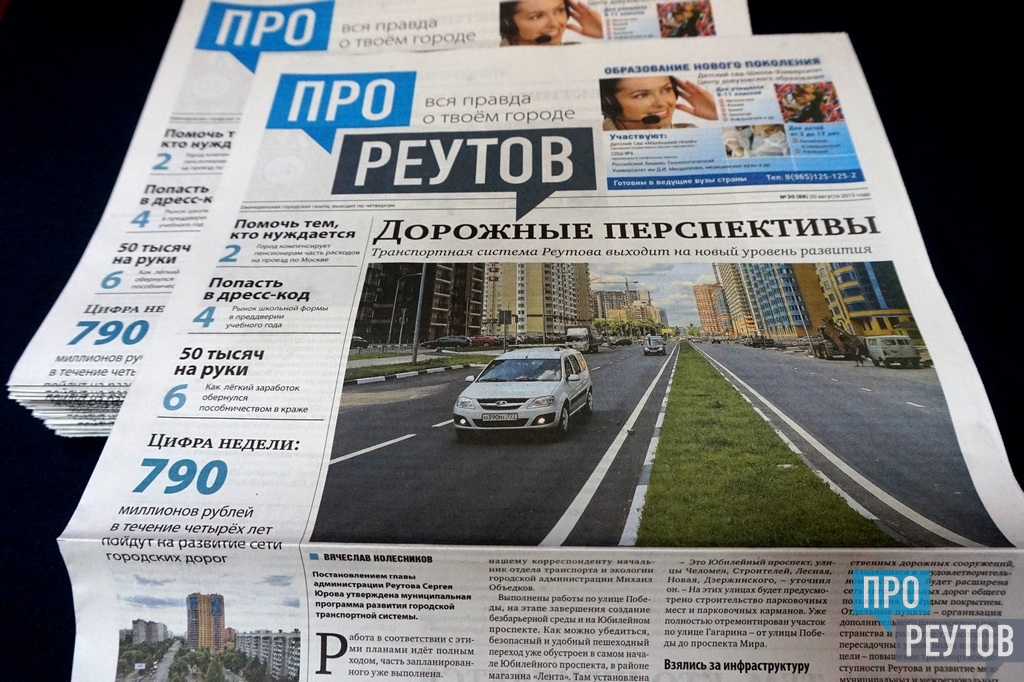 В четверг 20 августа вышел 30-й (88-й) выпуск бесплатной еженедельной газеты «ПроРеутов». Утром газету предлагали у метро «Новокосино» (на реутовской стороне) и возле железнодорожной станции Реутово. Свежий номер также можно взять в ДК «Мир», в Молодёжном культурно-досуговом центре, в Музейно-выставочном центре и в новом здании Многофункционального центра на улице Победы, в НПО машиностроения, в колледже «Энергия» (ПУ №90), в комплексе «Спорт-сервис» на улице Котовского, в расчетных центрах СЦГХ и в других заведениях нашего города.
