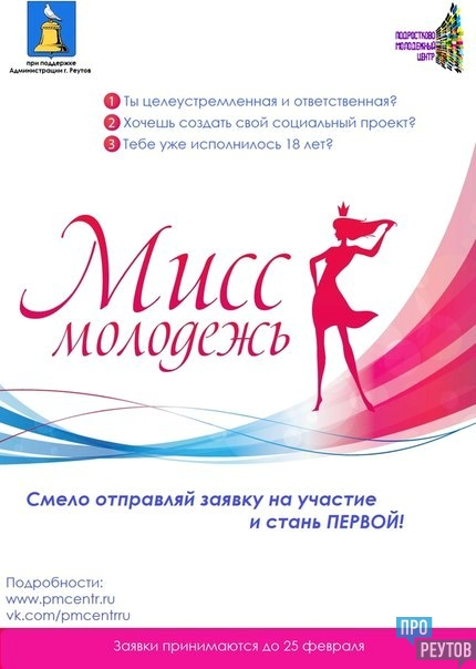 Имя реутовчанки, которая получит звание «Мисс Молодёжь — 2016», станет известно 4 марта. В одноимённом конкурсе могут принять участие все жительницы города от 18 до 28 лет.