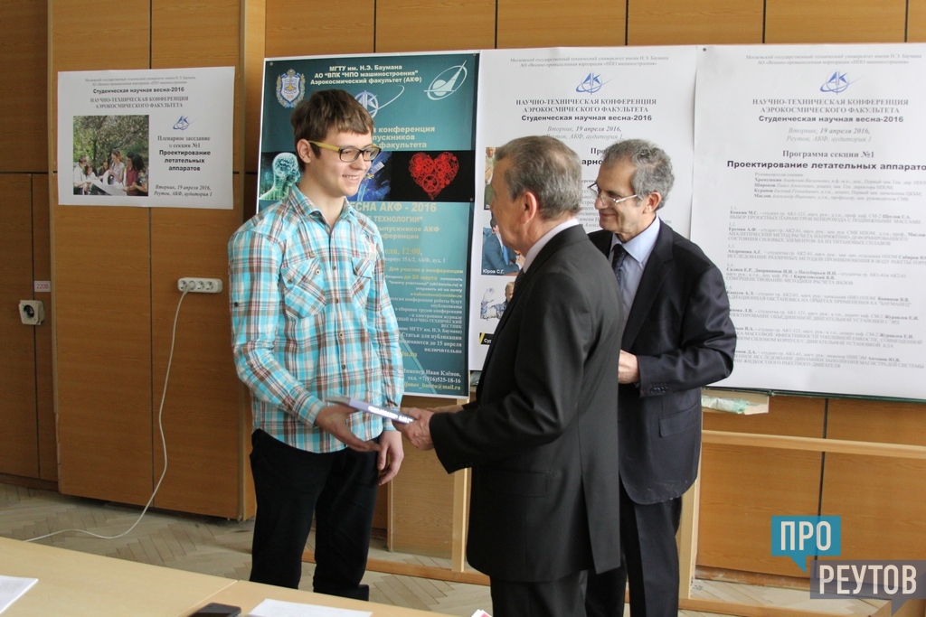 Аэрокосмический факультет МГТУ имени Н.Э. Баумана провёл научно-практическую конференцию «Студенческая научная весна — 2016». В рамках конференции студентам также вручили удостоверения именных стипендиатов.