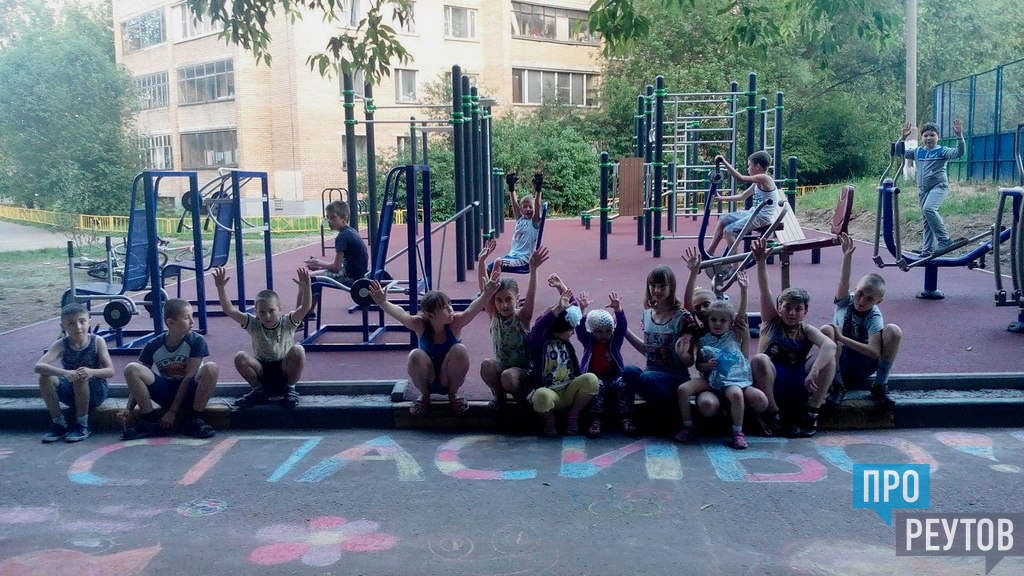 Дети трогательно заботились о строителях, пока те собирали тренажёры: приносили воду в жару и стулья, чтобы рабочие могли передохнуть. А когда площадку открыли, радость была такая, что на шум и гвалт выскочили жители из окрестных домов, пытаясь выяснить, что происходит. На прощание маленькие реутовчане выразили свою благодарность за площадку, написав на асфальте цветными мелками слово «спасибо». Читателям библиотеки площадка очень пригодится.