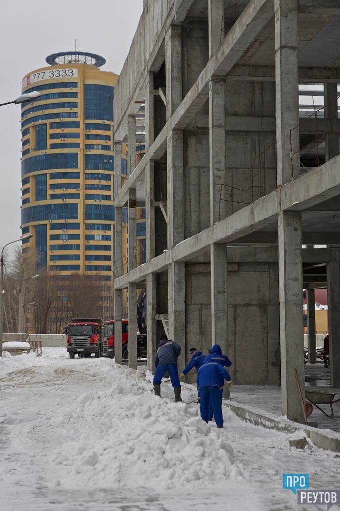 На стройплощадку долгожданного для реутовчан спорткомплекса вернулись рабочие. Ранее здесь был заложен фундамент, выполнены все монолитные работы. В ближайшее время строители начнут кладку кирпича стен, а также займутся устройством кровли. Сейчас сотрудники подрядной организации заняты подготовительными работами — уборкой снега и наледи, как вокруг будущего здания, так и на этажах. Кроме того, полным ходом идёт завоз и разгрузка строительного материала — кирпича и блочных конструкций.