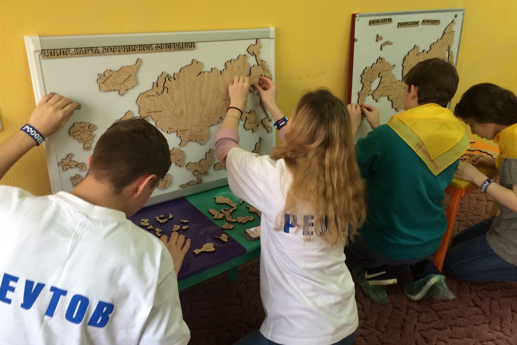 Быстрее всех собрать карту на доске удалось старшеклассникам школы № 10 Ивану Ильину и Анжелике Майер — им потребовалось 16 минут 42 секунды.