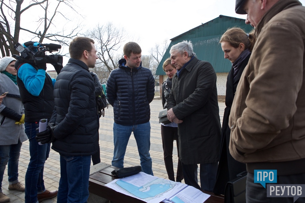 Обход пруда начался с новой площади у хэштега. Участники совещания с планом проекта и эскизами двинулись вдоль берега, на месте обсуждая нюансы скорых преобразований. Приведение в порядок береговой линии — самый большой объём предстоящих работ.