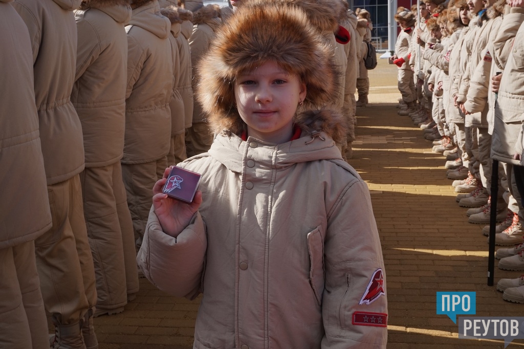 Министр обороны и губернатор Подмосковья вручили значки лучшим юнармейцам, стоящим в первом ряду по обе стороны от сцены. Сергей Шойгу прошёл по левой стороне построения, а Андрей Воробьёв по правой, где стояли три юнармейца из Реутова: Ника Канарейкина и Алина Земскова из военно-патриотического клуба «Рекрут» и Егор Воробьёв из кадетского класса.