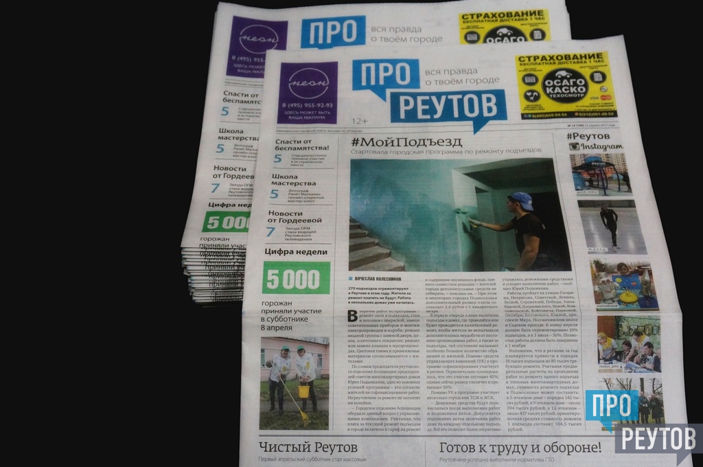 В четверг 13 апреля вышел 14-й (168-й) выпуск бесплатной еженедельной газеты «ПроРеутов».