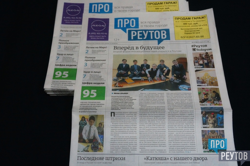 В четверг 20 апреля вышел 15-й (169-й) выпуск бесплатной еженедельной газеты «ПроРеутов».