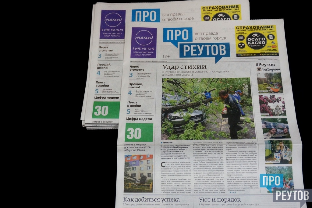 В четверг 1 июня вышел 21-й (175-й) выпуск бесплатной еженедельной газеты «ПроРеутов».