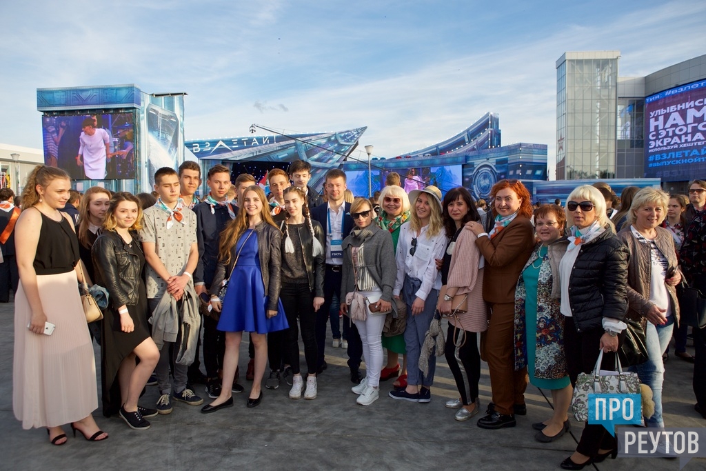 Каждая школа представила свою «визитную карточку»: на экране демонстрировали видеофильм об образовательном учреждении, а в это время выпускники рассказывали о себе и хором скандировали речёвки. После этого всем вручили от города брендовые оранжевые ленты с надписью «Выпускник-2017». Ещё минута, и 36 пар закружились в вальсе на главной площади Реутова.