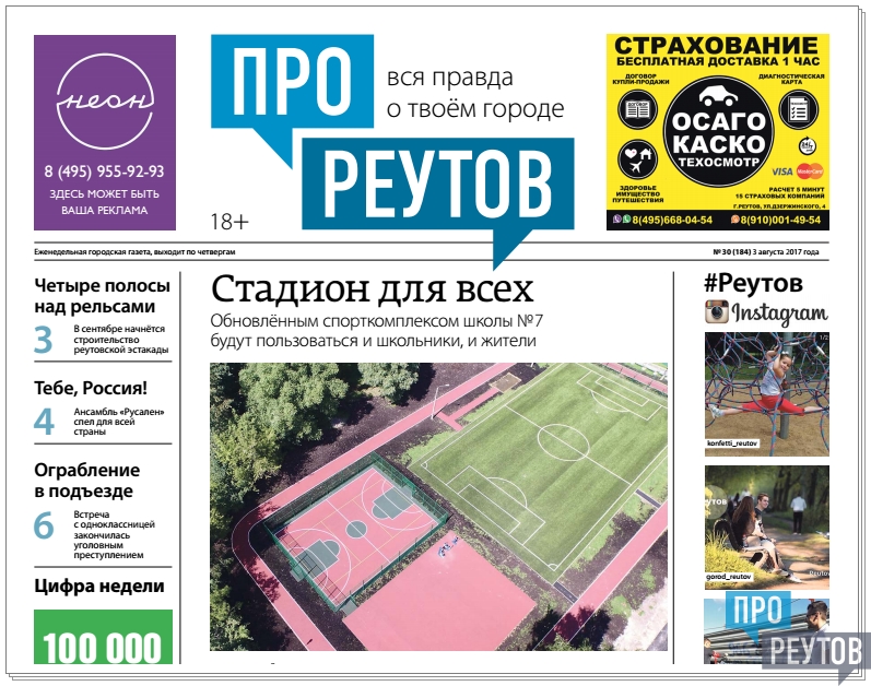В четверг 3 августа вышел 30-й (184-й) выпуск бесплатной еженедельной газеты «ПроРеутов».