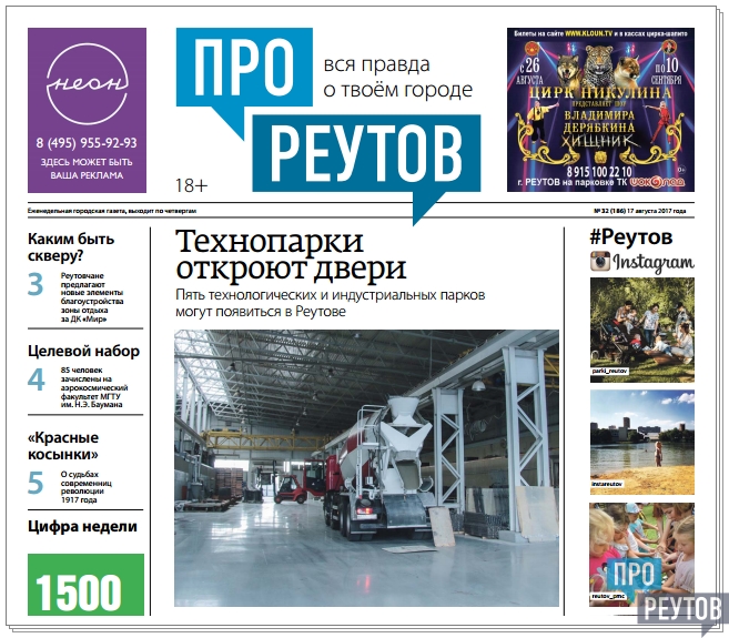 В четверг 17 августа вышел 32-й (186-й) выпуск бесплатной еженедельной газеты «ПроРеутов».