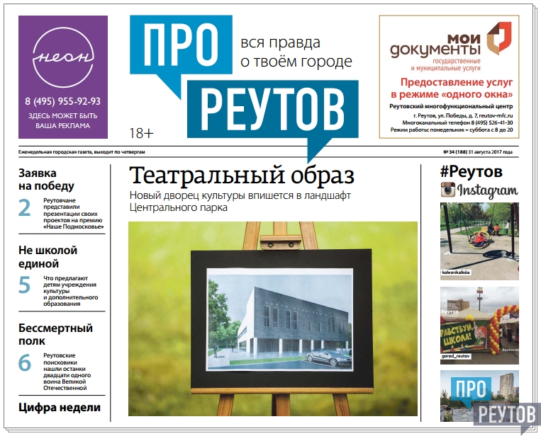 В четверг 31 августа вышел 34-й (188-й) выпуск бесплатной еженедельной газеты «ПроРеутов».