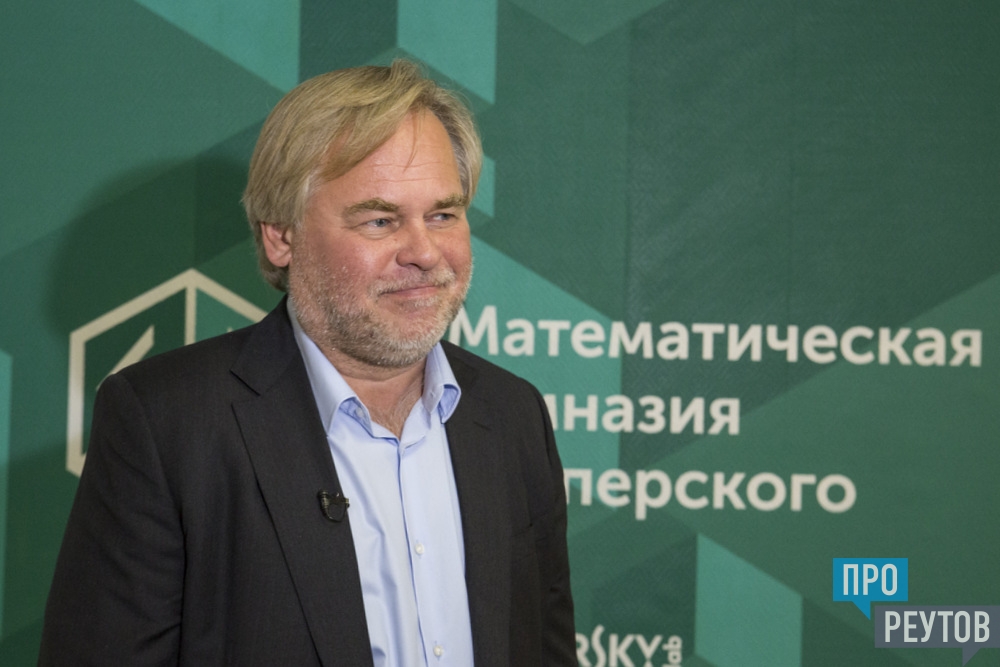 Глава Реутова Станислав Каторов после урока, который провёл Евгений Касперский, рассказал журналистам о перспективах развития математический гимназии.