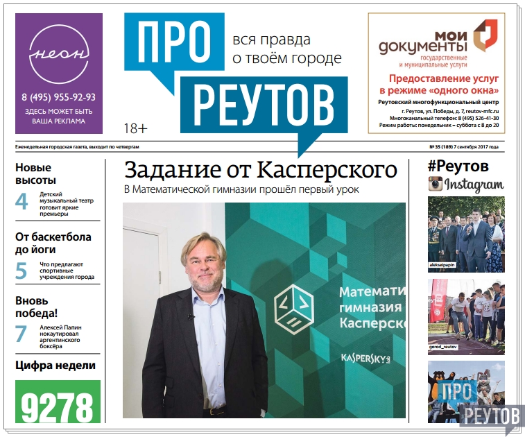 В четверг 7 сентября вышел 35-й (189-й) выпуск бесплатной еженедельной газеты «ПроРеутов».