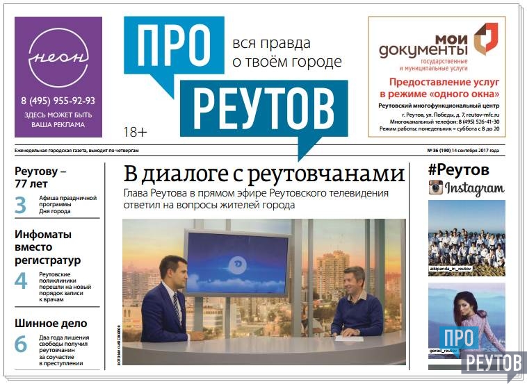 В четверг 14 сентября вышел 36-й (190-й) выпуск бесплатной еженедельной газеты «ПроРеутов».