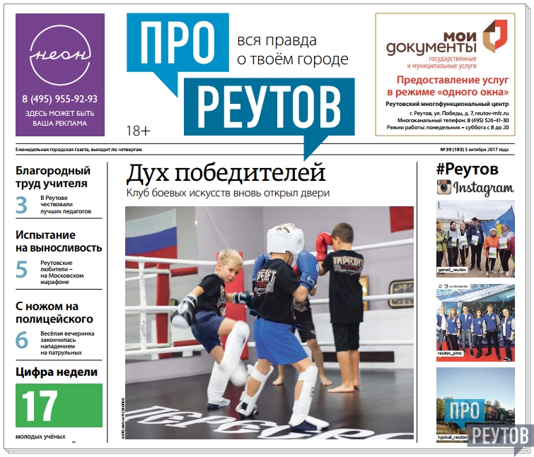 - Дух победителей. Клуб боевых искусств вновь открыл двери;- Вековые великаны. О реутовских деревьях-долгожителях;