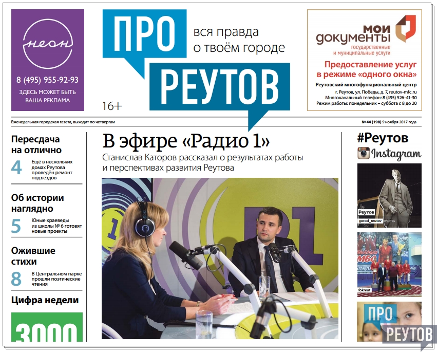 В четверг 2 ноября вышел 44-й (198-й) выпуск бесплатной еженедельной газеты «ПроРеутов».